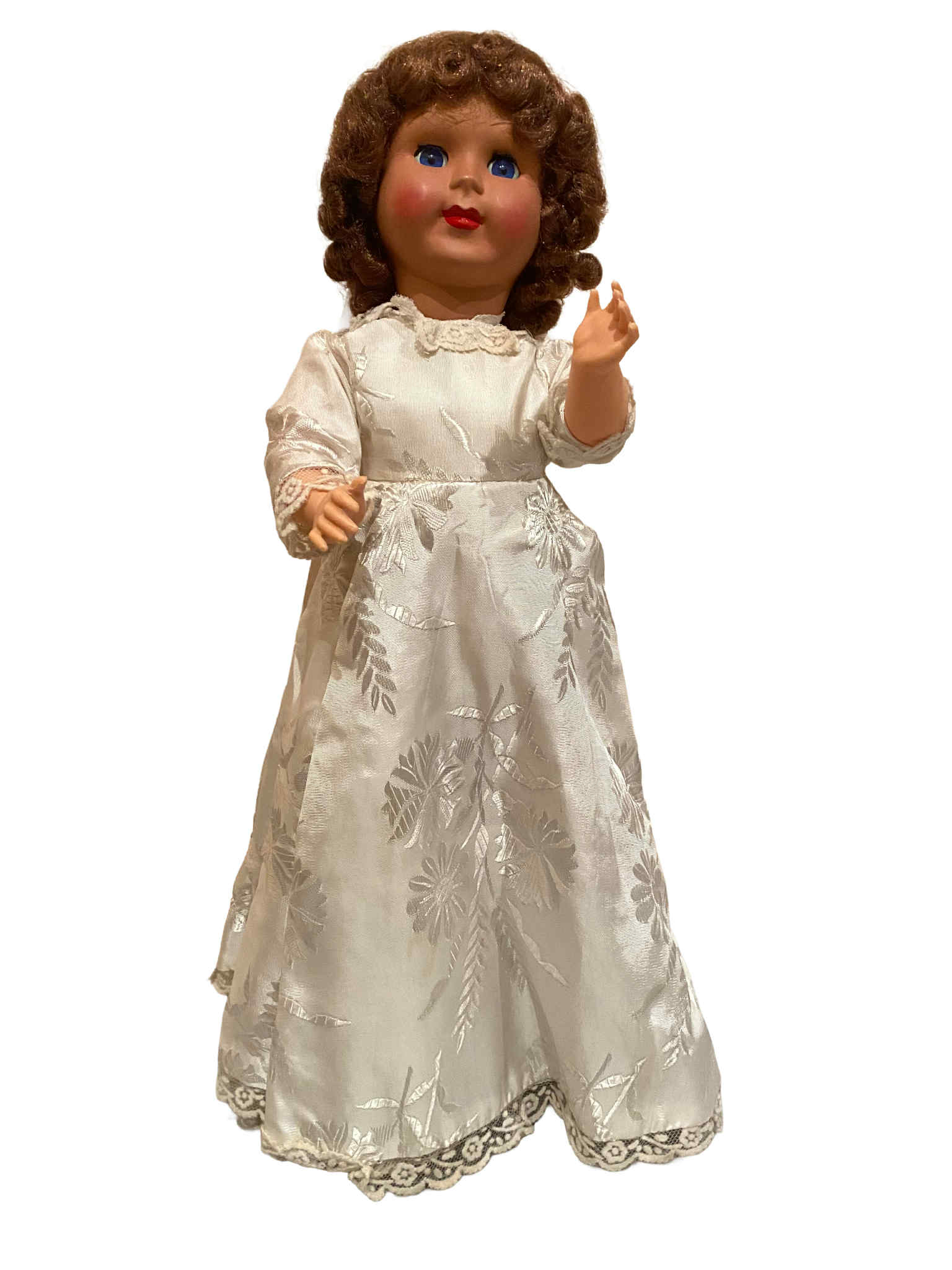 Cette poupée Rhodoïd des années 50/60 est bien plus qu’une simple poupée ; c’est un objet de collection précieux qui évoque des souvenirs d’enfance et d’une époque plus simple. Elle constitue un cadeau original et attentionné pour les collectionneurs de poupées, les passionnés de vintage ou toute personne appréciant la beauté et le savoir-faire des jouets anciens. Exposez-la fièrement sur une étagère, une cheminée ou dans une vitrine pour ajouter une touche de charme vintage à votre décoration intérieure. Cette poupée Rhodoïd est un lien tangible avec le passé, offrant un aperçu des jouets et de l’esthétique du milieu du XXe siècle. Ne manquez pas l’occasion de posséder ce rare et magnifique morceau d’histoire ; offrez-vous cette superbe poupée Rhodoïd et enrichissez votre collection d’une pièce vraiment spéciale qui sera chérie pendant des années.