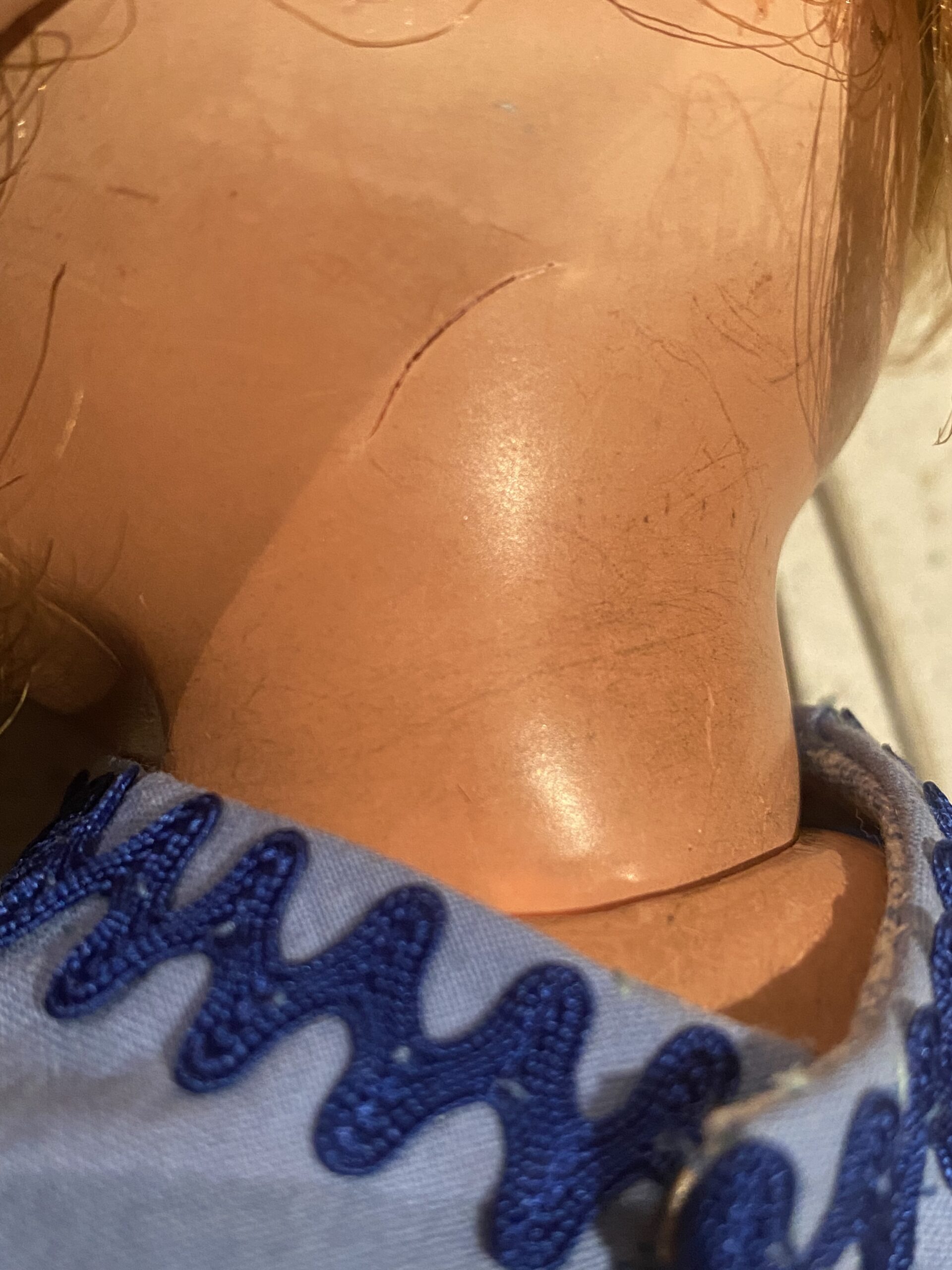 Elle a une légère fêlure au dessus de l’œil gauche et dans la nuque
