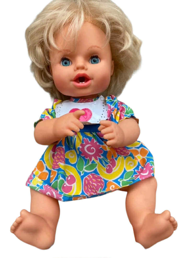 Conçue pour des heures de divertissement, Mon Bébé Gourmand offre une fonctionnalité unique alimentée par deux piles AA (non incluses). Que vous souhaitiez raviver de tendres souvenirs ou faire découvrir aux plus jeunes le charme des jouets vintage, les fonctionnalités de cette poupée en font un ajout précieux à toute collection. La poupée conserve son interactivité d’origine, pour un plaisir qui se prolonge.
