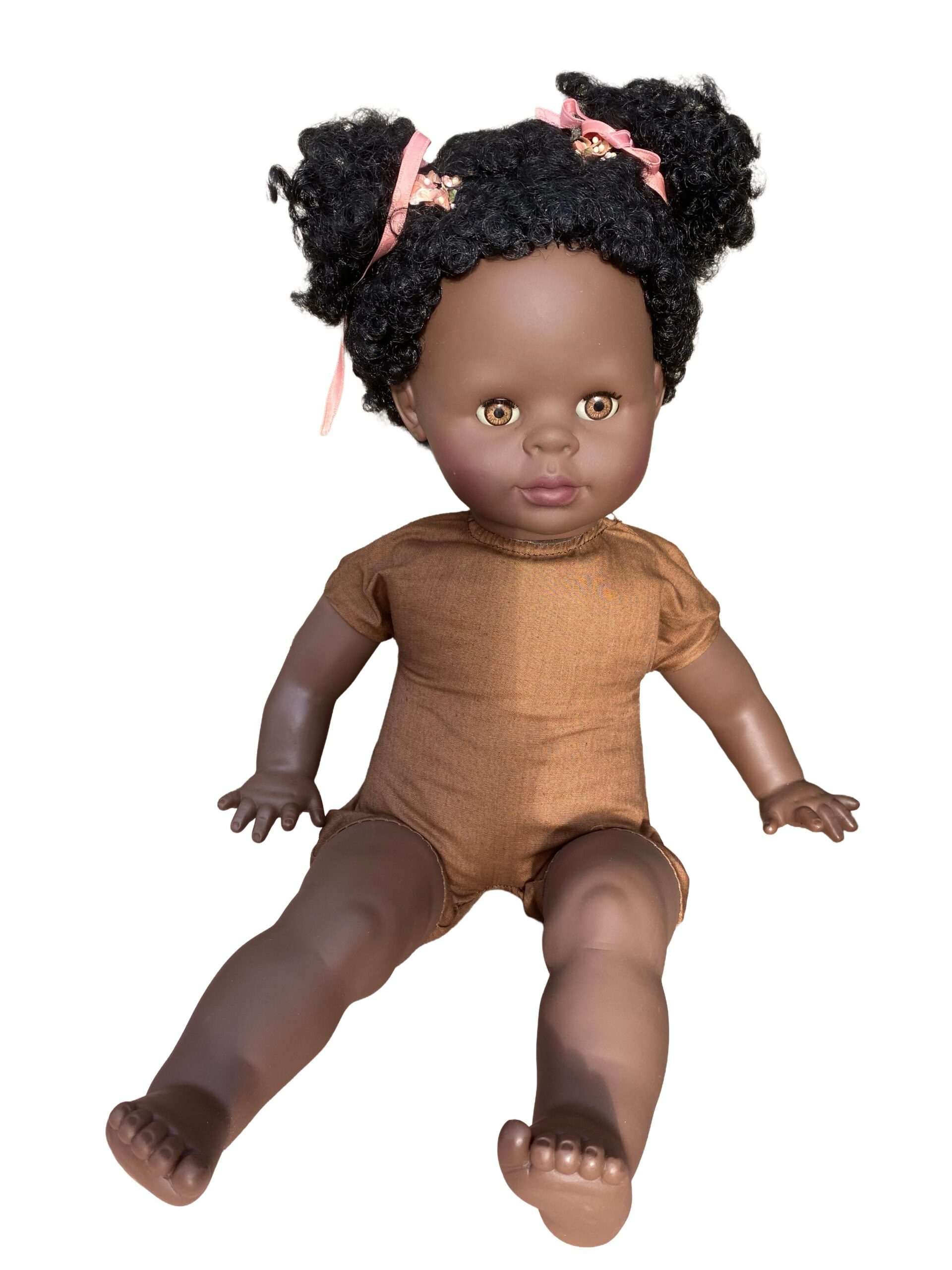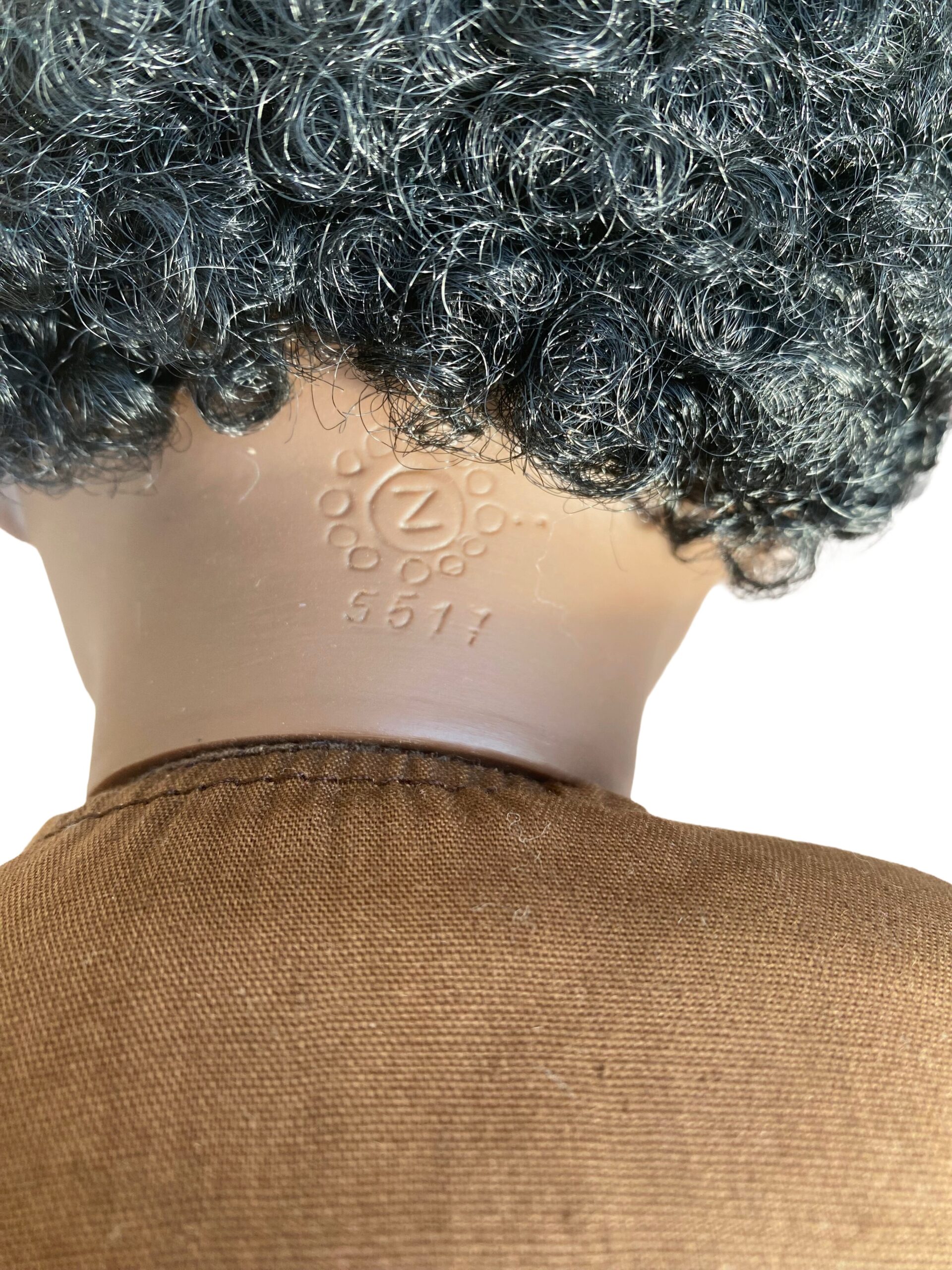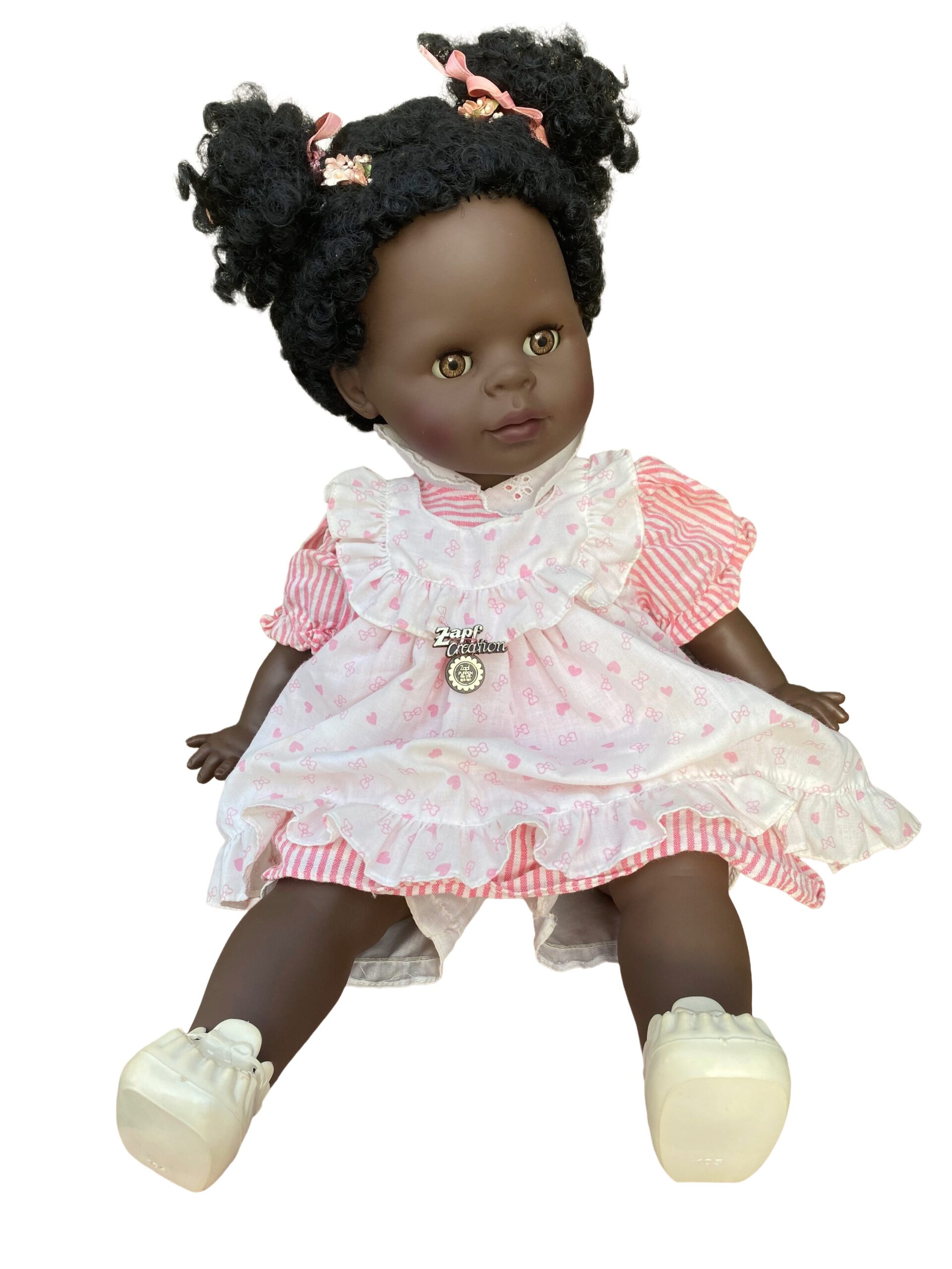 Découvrez ce superbe modèle de la marque allemande Zapf, une poupée emblématique du savoir-faire européen. Cette Black baby doll est une pièce authentique datant des années 1986, très recherchée par les collectionneurs.