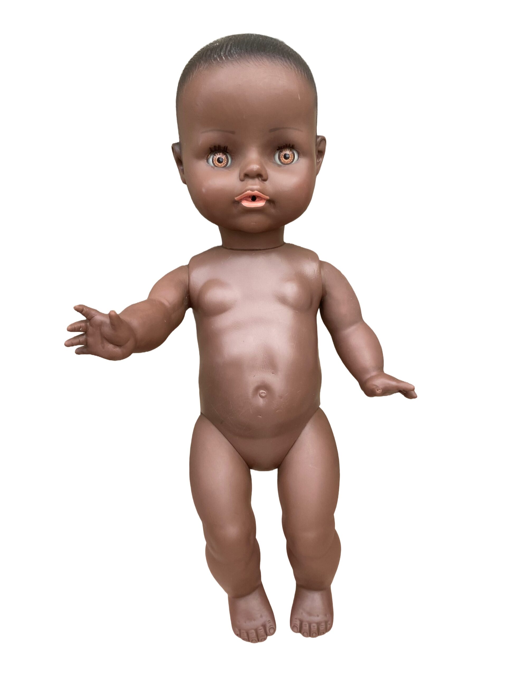 DaDou est encore en très bon état, offrant aux collectionneurs un jouet vintage à la fois rare et bien préservé. Sa taille et ses fonctionnalités originales en font un poupon très apprécié des passionnés de jouets anciens.